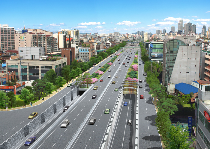 »ïº¸±â¼ú´ÜÀÇ Â÷º°¼º°ú ¿ª·®À» º¸¿©ÁÖ´Â ´ëÇ¥ »ç¾÷À¸·Î´Â ±¹³» ÃÖÃÊ·Î ÅͳΠ»óºÎ¿¡ µµ·Î, ÇϺο¡ Àú·ù°ø°£À» ¼³Ä¡ÇÏ´Â ¡®À̼ö¡°úõ º¹ÇÕÅͳΡ¯µµ ²ÅÈù´Ù. ÀÌ »ç¾÷Àº 2010³â »ç´ç¿ª ÀÏ´ë ħ¼ö ÀÌÈÄ Ä§¼ö¹®Á¦ ÇØ°á°ú µ¿ÀÛ´ë·ÎÀÇ °íÁúÀûÀÎ ±³Åë¹®Á¦¸¦ µ¿½Ã¿¡ ÇØ°áÇϰíÀÚ »ïº¸±â¼ú´ÜÀÌ °í¾ÈÇØ³½ »ç¾÷ÀÌ´Ù.